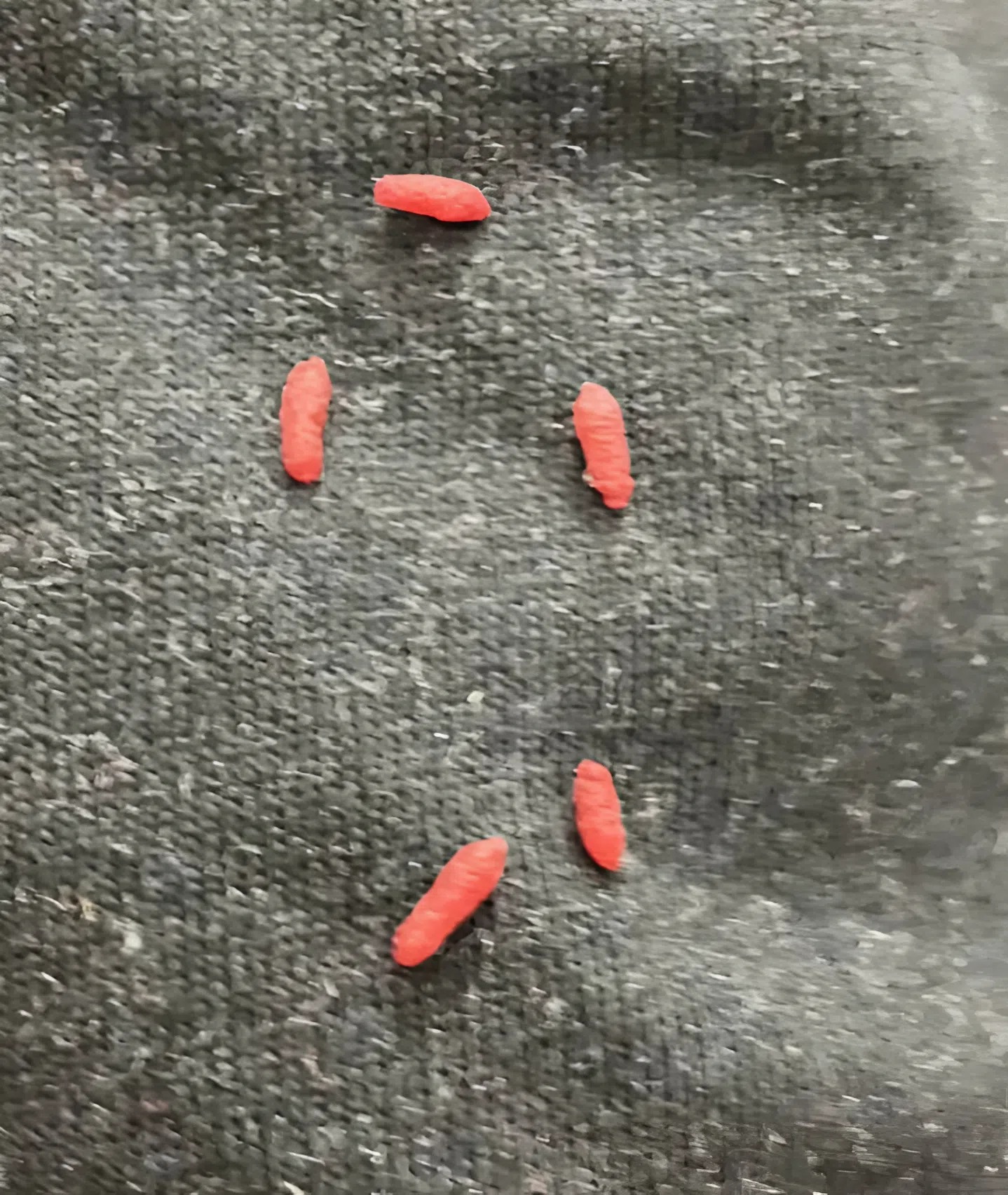 Wyjęłam swetry z szafy i zauważyłam na jednym z nich dziwne małe, czerwone owalne kulki. 😲 Były nieprzyjemne w dotyku i brzydko pachniały 🤔.