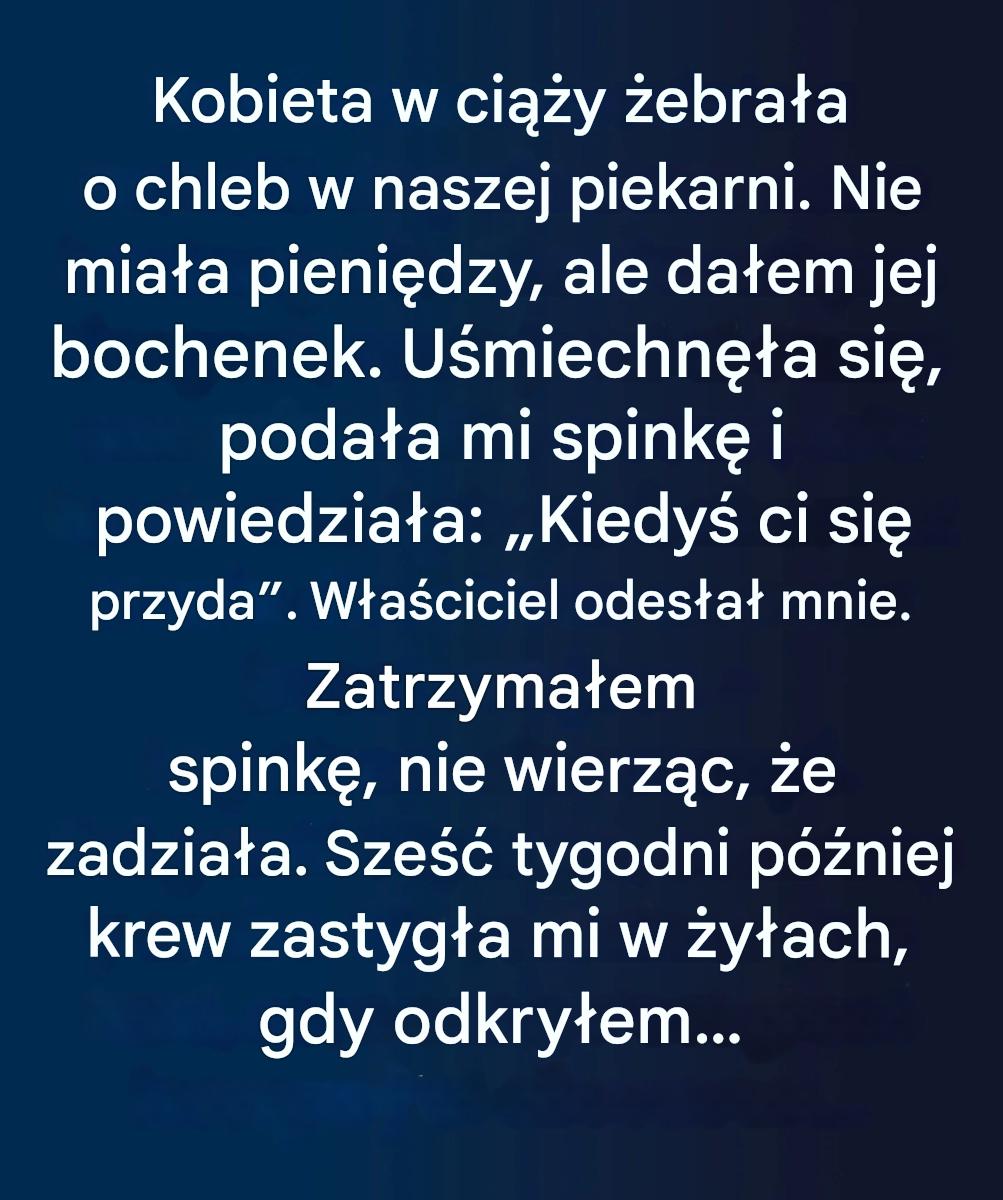 Tego dnia w piekarni panowała cisza, wręcz zbyt cisza. Ciężarna kobieta z wahaniem pchnęła drzwi. Pokornie poprosiła o bochenek chleba, ale przyznała, że nie stać jej na niego. Stojąca przed nią młoda sprzedawczyni, Camille, poczuła instynktowny impuls: zaproponowała jej jeszcze ciepły bochenek, po prostu z życzliwości. W zamian klientka, Élise, dała jej małą spinkę do włosów, skromny przedmiot wręczony z wdzięcznym uśmiechem: „Pewnego dnia będzie ci potrzebny”.